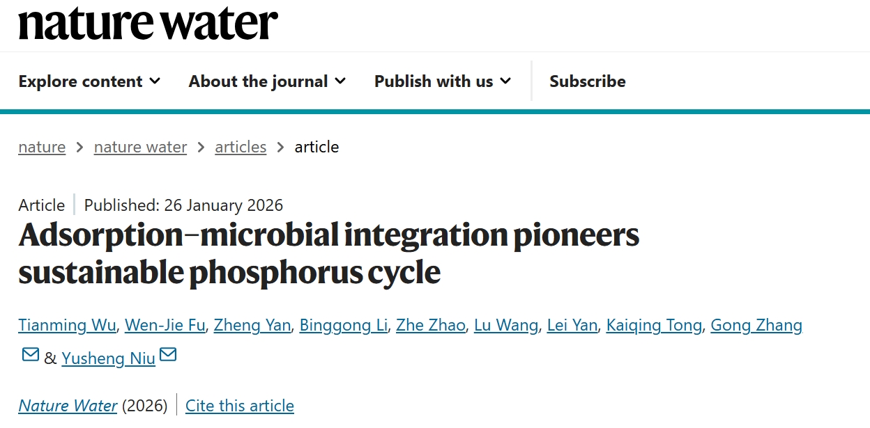 牛玉生教授团队在Nature Water发表题目为“Adsorption-Microbial Integration Pioneers Sustainable Phosphorus Cycle”的研究成果,该成果揭示了微生物在环境生态修复领域的重要作用。h动漫