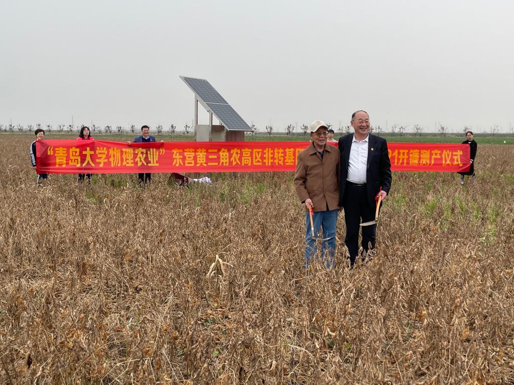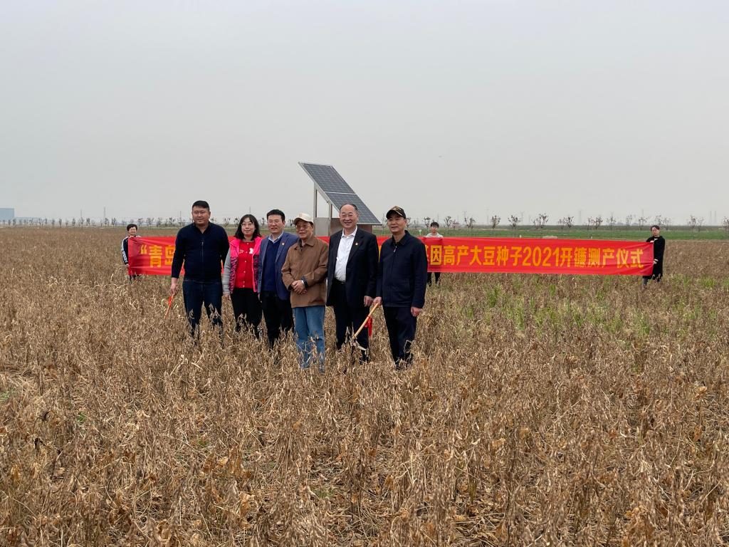 “物理农业”东营黄三角农高区(国家)非转基因高产大豆种子开镰测产仪式。