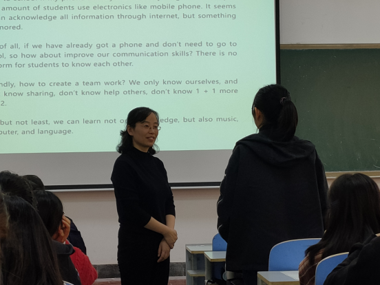 盛春媛老师以其幽默风趣的方式开场,调动了全体同学的热情。在两个小时的讲座中,盛老师从多年的英语四六级阅卷经验出发,分别从四六级试卷分值权重、各项题型备考技巧、备考侧重点以及命题趋势等几个方面全方位讲解。讲座中,还结合历年四级写作样卷进行细致入微的剖析,为同学们提供合理有效而实用的方法和高质量、高效率备考英语四六级考试策略。