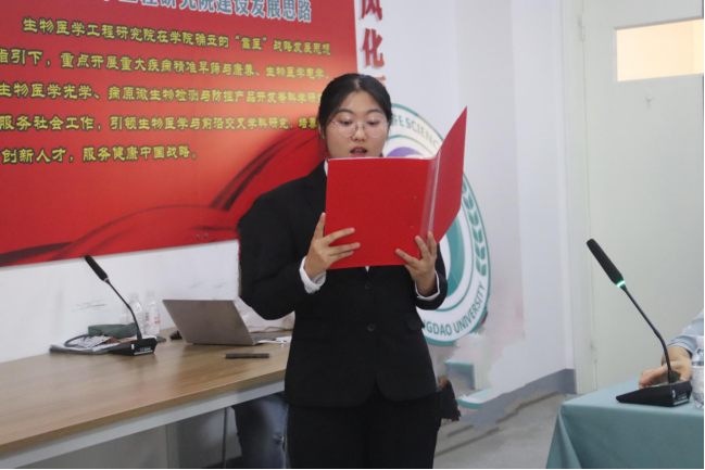 图 新生代表、生物与医药专业2022级博士研究生郭强发言