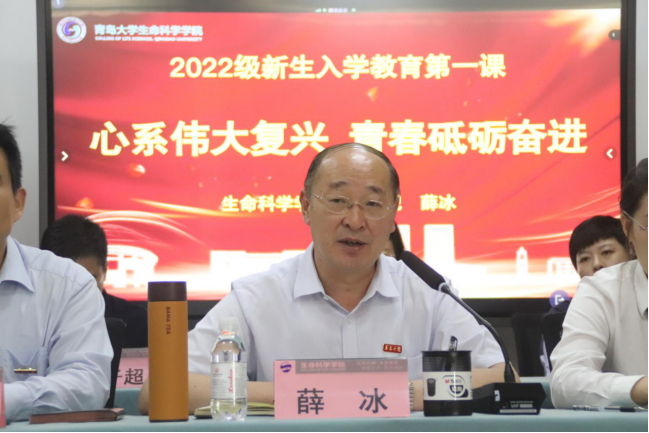 始终秉承“崇德 守正 活力 奋进”的院训精神,坚持党建引领,定向导航,以“培养高素质人才”为目标,注重在教学科研、学科建设、师资队伍、人才培养等内涵特色发展上下功夫,努力为同学们成长成才提供动力和保障,同学们可以尽情施展才华,激荡青春。薛冰书记对2022级新生提出要求,一是要坚定理想信念,厚植家国情怀。他要求全体新生同学一定要提高思想觉悟,坚定不移地听党的话、跟党走!自觉贯彻执行党的路线、方针、政策,不断增强做中国人的志气、骨气、底气;二是要铸就健康体魄, 创造健康人生。当前,健康已成为人类的第一需求,加强体育锻炼是努力学习并做出卓越成就的基本保证,要求大家在紧张的学习之余将锻炼身体作为必备计划;三是要刻苦学习,努力钻研,开拓创新。学院会为每位生科学子提供成长成才的良好环境,同学们要摒弃浮躁,认真上好每一堂课、做好每一个实验、打牢专业基础,不断拓展知识面,不断拓展知识的深度和广度,不断增强科学精神和人文素养,不断培养独立思考能力和批判性思维;四是要以榜样的力量引领前行。学习先进人物和杰出校友的事迹和精神,在火热的青春中放飞人生梦想,让青春在为祖国、为民族、为人民的不懈奋斗中绽放绚丽之花。