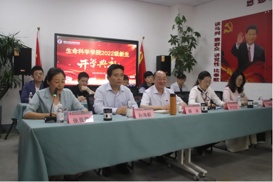 2022级本、硕、博新生开学典礼暨入学教育第一课在博雅楼301室隆重举行。本次开学典礼以线上、线下结合的方式进行,学院党委书记薛冰,党委副书记、院长许元红,党委副书记张雪蕾,党委委员、副院长孙海新等党政领导出席开学典礼,各研究院负责人、教学系、实验中心主任、各职能部门人员、教师代表、部分新生代表线下参加典礼,2022级全体新生及家长、部分校友等在线观看典礼。活动由学院党委副书记张雪蕾主持。