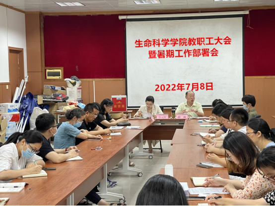 7月8日上午,学院在博雅楼103会议室召开全院教职工大会暨暑期工作部署会,学院全体教职工参加了会议,党委书记薛冰主持会议。