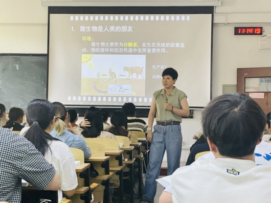 党委书记薛冰、院长许元红、副书记张雪蕾、副院长孙海新、院长助理丁晓腾及学院教科办工作人员一同来到博学楼203,听取了学院生物技术系主任王超老师为21巴斯德班及21生物班讲授的《微生物学》。王老师的授课内容涵盖了微生物在食品、生物工程等各领域的应用,在授课过程中,充分展现了自己的专业素养,以生动的讲解和丰富的实例吸引了学生的注意力。