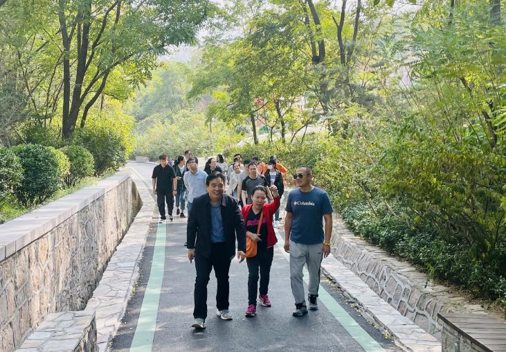 中午时分,老师们相聚在浮山生态公园南门口集合后出发。大家一路欣赏着秋日的美景,感受着新鲜空气,交流着工作心得,在欢声笑语中享受着大自然的宁静与美好。在登山途中,大家共同合影留念,记录下这难忘的时刻。因出差及临时开会未能参加的学院党委书记薛冰和院长许元红也隔空为此次活动送上祝福,希望大家“立德树人守初心,强身健体重在行”。