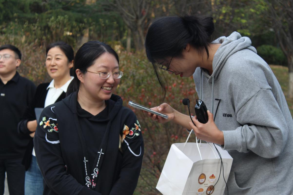 “自古逢秋悲寂寥,我言秋日胜春朝”,在小广场中,老师们停下脚步,兴趣盎然地参与到欢乐的歌曲连唱比赛中。全体老师们分成生物队、食品队和行政队三组进行比拼。每队派代表抽取歌名,在歌曲播放的暂停处由队员抢答接续唱下去。每队限时三分钟,最终生物队完美胜出。游戏进行得热火朝天,老师们也褪去了课堂里的认真严肃,展现出了不同于往日的活泼。