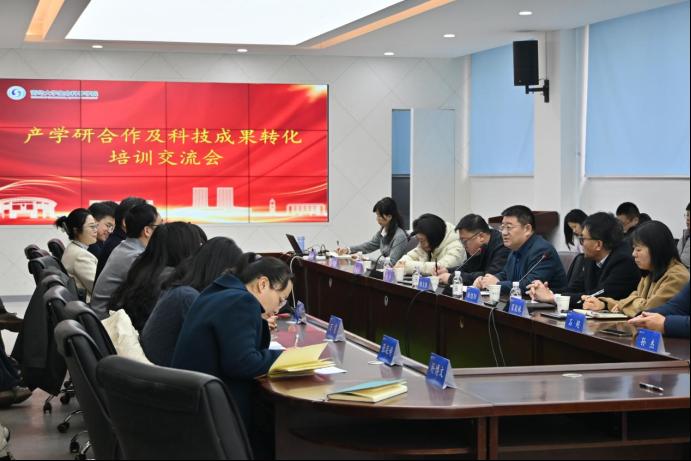 院长孙海新对产业技术研究院各位同事的到来表示欢迎,他介绍了学院的组织架构以及学院人才培养、科学研究及成果转化方面的整体情况。双方就学院科研成果转化存在的问题,展开了讨论和分析,探讨切实可行的解决方案。