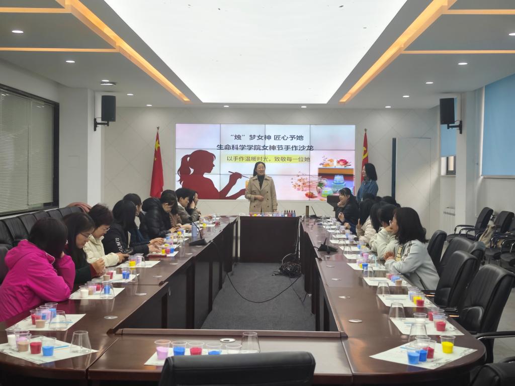 在学院会议室举办“烛”梦女神 匠心予她——女神节手作沙龙活动,学院女教职工齐聚一堂,以巧手制作流沙彩蜡,共赴温馨雅致的节日之约。