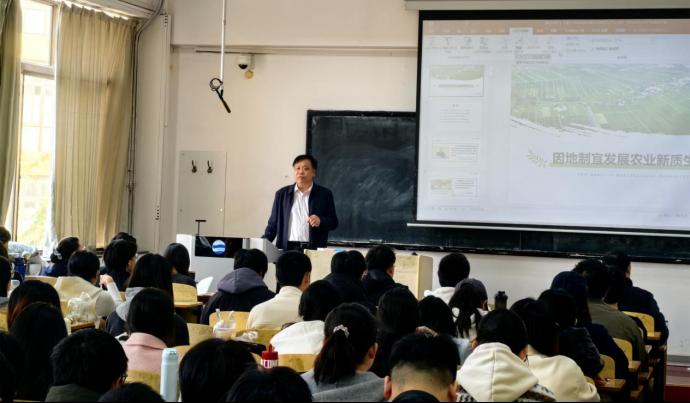 课程以“因地制宜发展农业新质生产力”为主题,从“深刻把握农业新质生产力的深刻内涵与特征”“深刻认识发展农业新质生产力的价值与意义”“全面把握发展新质生产力的本质要求”“探索因地制宜发展新质生产力的实践路径”“强化系统推进发展农业新质生产力的保障措施”等五个方面与同学们进行了深入的交流。