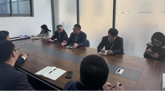 孙建华、孙海新对鲍文胜一行来院调研指导工作、上门提供咨询服务表示热烈欢迎,对校科研成果转化中心长期以来对学院科技成果转化和服务社会工作的大力支持表示感谢,重点介绍了学院在科学研究、社会服务等方面的情况和总体思路。