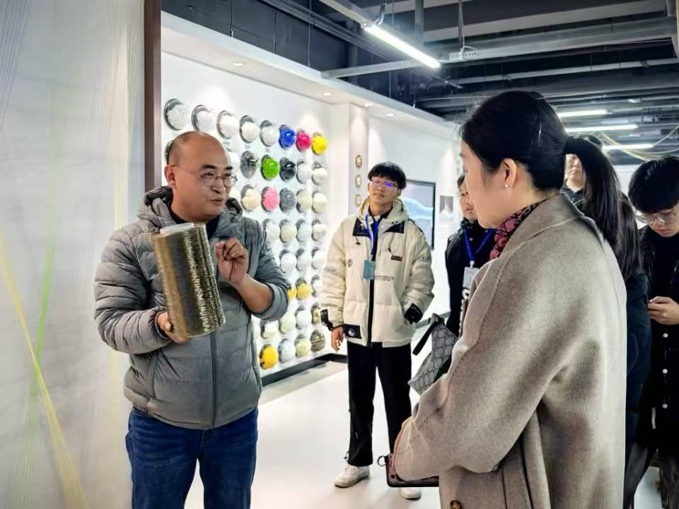 纺织馆进行参观。纺织馆共设有四个展厅,通过实物展示、应用场景、沉浸式体验等多种展陈方式,场馆展现了纺织“科技、时尚、绿色”的行业定位和青大纺织服装学院的发展