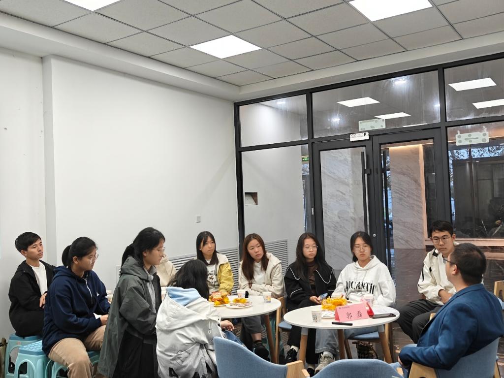 特聘教授、博士生导师、废弃生物质高值化利用研究中心主任郭磊主讲,及学院十余位学生参与。本次交流会围绕大学生的学业发展、考研选择与就业方向等核心议题展开。