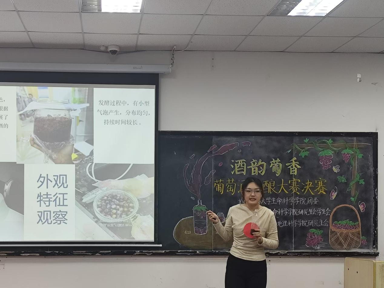 颁奖环节结束之后,华东百利酒庄高级工程师孟佳敏先生为各组的葡萄酒进行了详细点评,使同学们进一步丰富了葡萄酒酿造的知识。生命科学学院党委副书记张雪蕾老师为本次大赛进行总结致辞,她表示希望同学们通过本次大赛真正做到在实践中学习、将理论知识落在日常行动中,并表达了对后续葡萄酒大赛开拓创新的殷切希望。