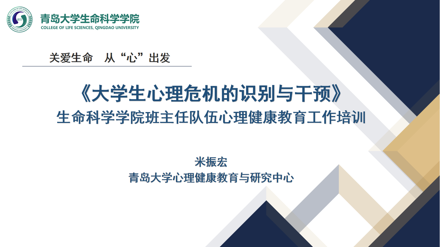 米振宏老师以《拨开迷雾见晴天——大学生心理危机的识别与干预》为题展开培训。她通过触目惊心的青少年心理健康问题,强调了大学生心理危机干预中的重要性,并围绕高校学工队伍在学生心理危机干预中面临的困惑,结合高校中发生的典型案例,深入解析了如何合法、合情、合理地处理大学生心理危机事件,如何识别异常心理以及心理评估与危机干预的五步法,为学院全体班主任开展班级心理工作提供了借鉴和参考。