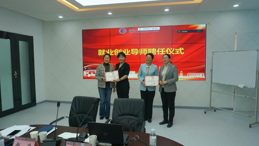 聘任仪式上,学院党委副书记张雪蕾、校生涯发展中心主任李莹老师为石慧、赵洁颁发了“h动漫