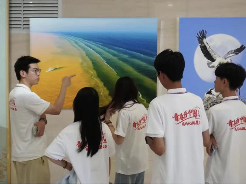 “泾渭青锋”乡村振兴实践团走进山东省东营市黄河文化馆,深挖黄河文化根脉激活传承动能,探究盐碱地治理的历史逻辑与创新路径。习近平总书记指出:“在我国5000多年文明史上,黄河流域有3000多年是全国政治、经济、文化中心。”在黄河流域,中华先民创造了光耀世界、博大精深的中华文化。历史上的黄河流域,农耕文明与游牧文明、海洋文明等不同形态的文明不断交流交融,不仅孕育形成了多民族融合统一的中华民族,更缔造了“万姓同根,万宗同源”的民族文化认同和“大一统”的民族主流意识,使黄河流域成为各民族守望相助、和谐共生的大家园。“前辈们用三十年攻克盐碱难题,我们要用新知识续写传奇。”实践团成员注视着新一代耐盐碱作物,从“大禹治水”到“新海水稻”,中华民族对这片土地的呐喊从未改变,从实验探究到田间试验,新时代的中国青年扎根中国大地,向时代发出青年学子的声音。离馆时,穹顶星图正投射出黄河入海的壮阔景象。粼粼波光中,文化馆墙上的金色箴言熠熠生辉:“保护黄河是事关中华民族伟大复兴的千秋大计。”学子们带着文化自信与科技火种奔赴田间,盐碱滩涂上,一曲政策引领、青春接力的绿色长歌正在奏响。当文化血脉与绿色创新交融,贫瘠的土地里绽放最绚烂的共富之花。黄河三角洲承载着中华民族农耕文明与自然博弈的史诗,奔涌的浪花里沉淀着五千年文明沉淀,在此见证黄河改道的自然伟力,反思人地关系的千年博弈,更从当代科技兴农实践中寻找“点碱成金”的振兴密码。