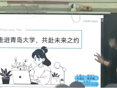 “叶脉寻踪 溯光而行”实践团于2025年7月9日,在山东省聊城市阳谷一中开展回母校宣讲活动,24级张钰凡、蒋梦真、张逸灿、王绮月4名同学参与其中。活动前,团队与母校充分沟通,收集整理学校宣传资料、制作宣讲PPT,并进行分工与培训;活动中,通过播放宣传片、PPT讲解、经验分享及互动交流,向学弟学妹展示h动漫