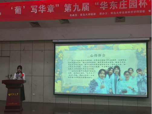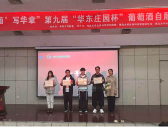 于近日举办“酒韵校园,‘葡’写华章”第九届“华东庄园杯”葡萄酒自酿大赛。