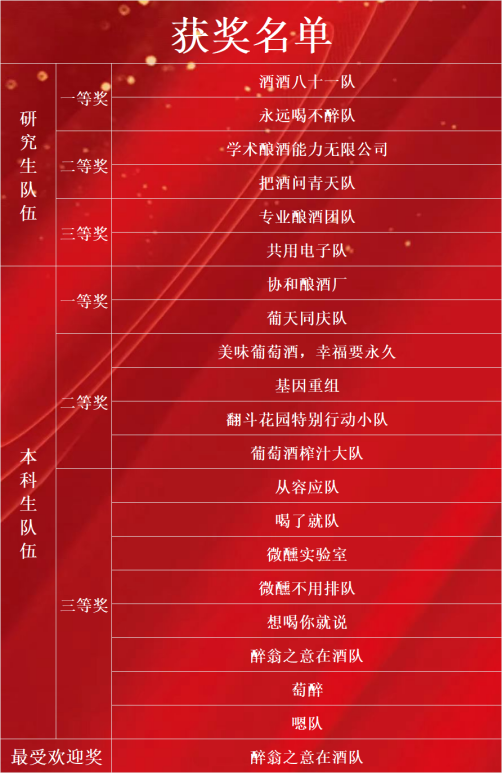 发酵环节结束后,参赛选手均收获了酒体醇厚、香气馥郁的自酿成果。为严格把控参赛作品品质,本次大赛设置初赛与决赛两级评选机制,经综合打分初选 ,最终有20支队伍脱颖而出,晋级决赛。