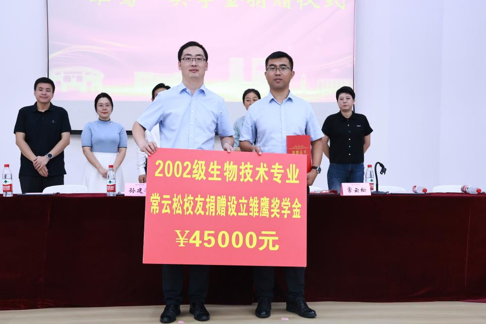 “雏鹰”奖学金签约暨“校友导师”聘任仪式在金家岭校区图文中心报告厅举行,2002级生物技术专业优秀校友常云松、h动漫