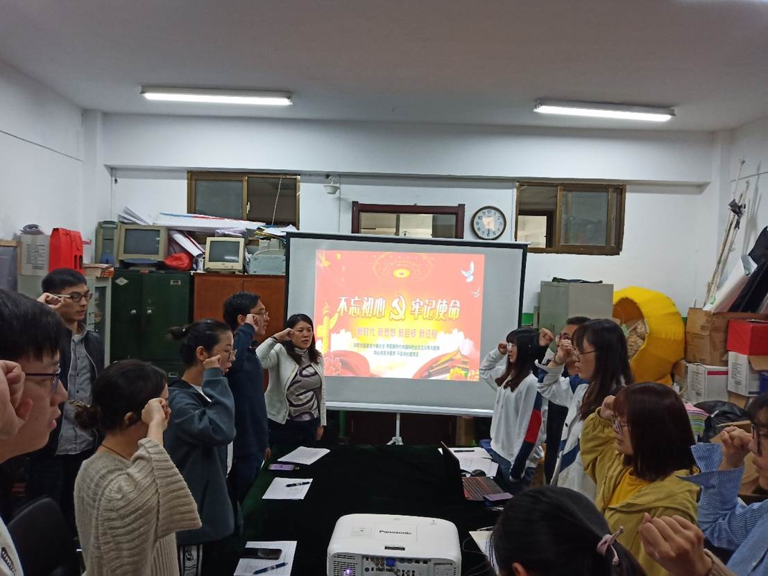 学生党支部于2019年10月22日在博观楼332会议室隆重地开展了“重温入党誓词,不忘入党初心”主题党日活动。支部书记孔令娟组织全体学生党员以集体宣誓的方式,开展了一次重温入党誓词的活动。