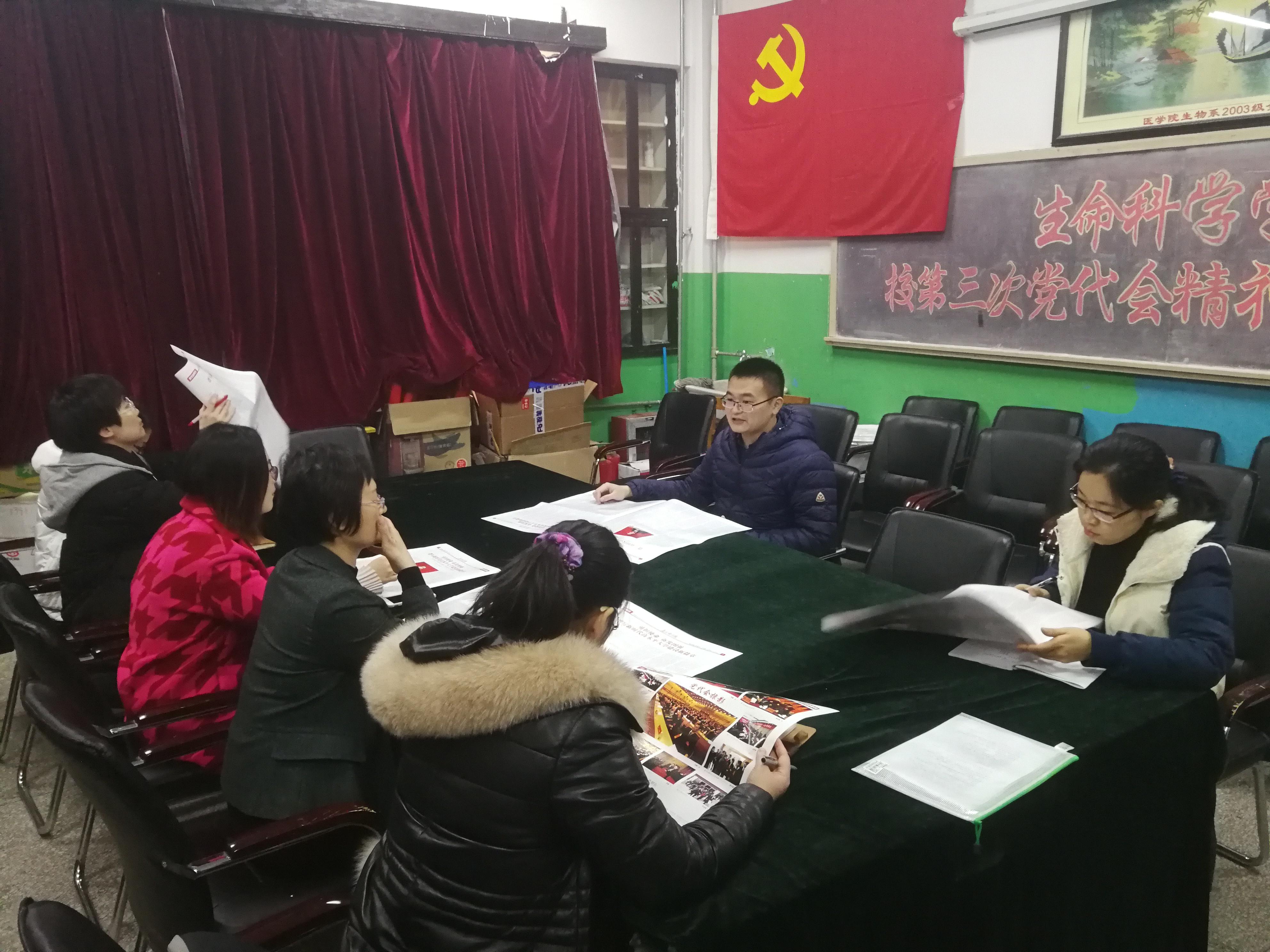 教工第二党支部在博观楼332会议室召开学习党代会精神专题组织生活会。会议由支部书记常诚主持,组织各位党员认真学习了校第三次党代会精神,并就如何在日常教学科研、生活中发挥教工党员先锋模范作用,以实际行动贯彻、落实党代会精神进行了交流。